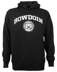 Heavyweight cotton-rich black pullover hood with front pouch pocket and embroidered BOWDOIN and mascot medallion appliqué on chest. From CI Sport.