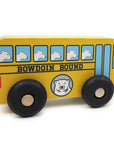 Toy wooden school bus filled with polar bear cubs. From Maple Landmark.