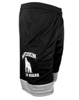 Unlined mesh shorts with drawstring waist and side pockets. BOWDOIN POLAR BEARS and mascot imprint on left leg. From Nike.