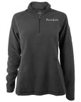 Warm, soft, slightly fitted women's ¼-zip pullover with embroidered BOWDOIN wordmark and zippered pocket on left sleeve. From L.L.Bean.