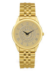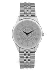 Men's watch with 3 ATM water-resistant case with matching rolled link wristband.