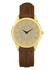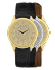 Men's water-resistant watch with engraved Bowdoin sun seal face and padded leather strap. From CSI.
