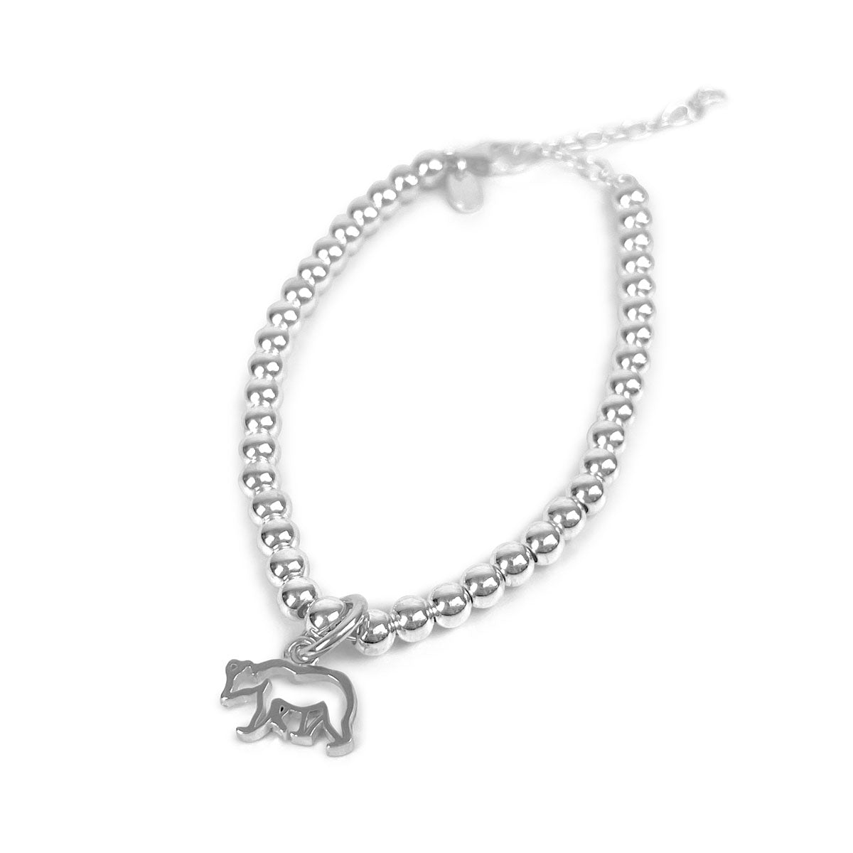Sterling silver adjustable-length beaded bracelet with polar bear pendant and lobster claw clasp. From Dayna Designs.
