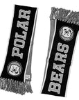 Lightweight 100% recycled scarf with two mascot medallions and POLAR BEARS on the face. From Uscape.